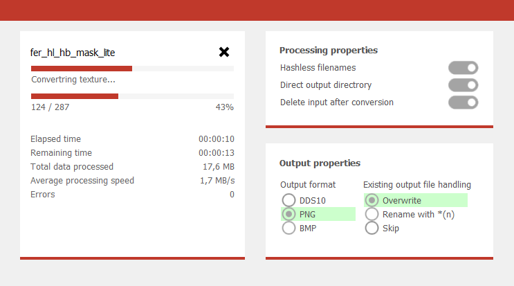 Swatchbin texture conversion to DDS10, BMP or PNGBulk task : Allows to convert thousands of textures by single click
